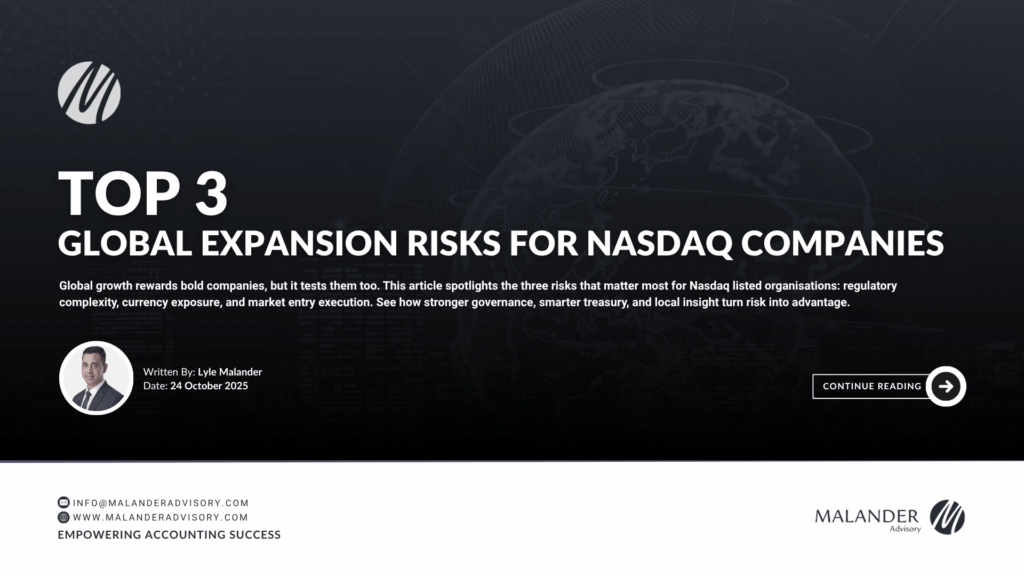 At Malander Advisory, we guide Nasdaq-listed firms through these decision points by combining financial due diligence with strategic localisation insight. This helps executives anticipate challenges before they arise and convert complexity into competitive advantage.